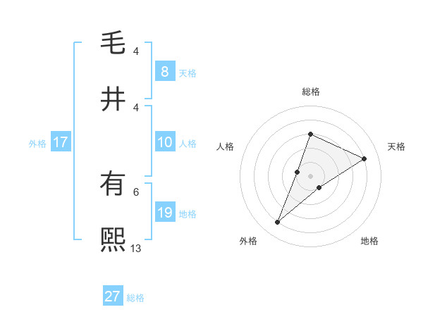 毛井 有煕さんの総格は27画の3点!