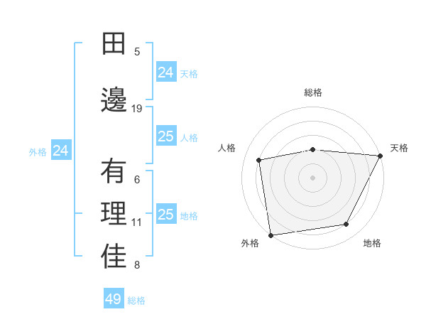 田邊 有理佳さんを姓名の画数から五運を鑑定