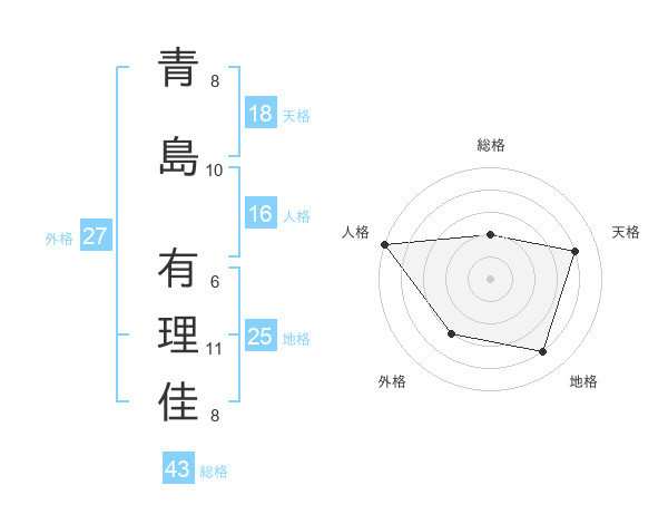 青島 有理佳さんを姓名の画数から五運を鑑定