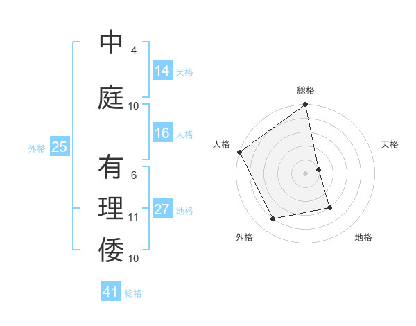 中庭 有理倭さんの総格は41画の5点!