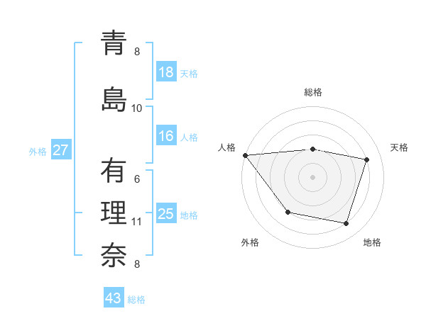 青島 有理奈さんを姓名の画数から五運を鑑定