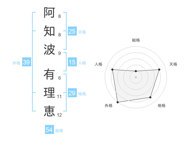 阿知波 有理恵さんを姓名の画数から五運を鑑定