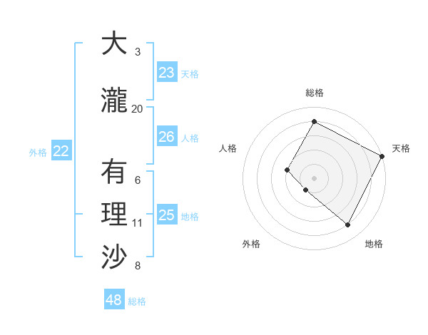 大瀧 有理沙さんを姓名の画数から五運を鑑定