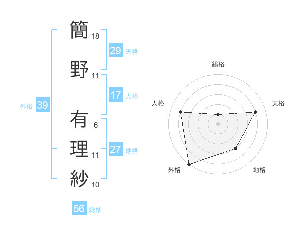 簡野 有理紗さんの外格は39画の5点