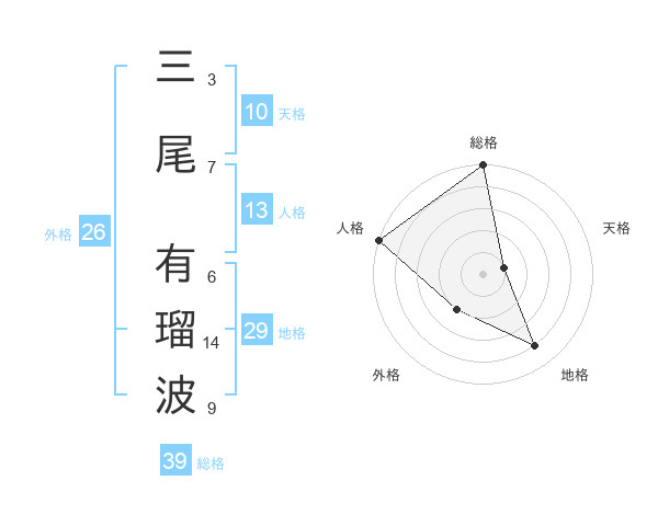 三尾 有瑠波さんの総格は39画の5点!