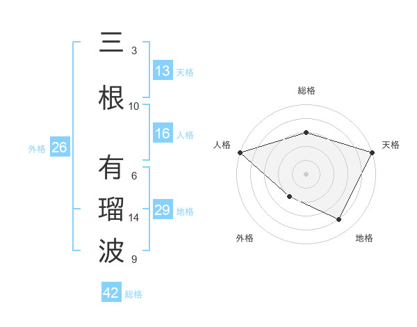 三根 有瑠波さんを姓名の画数から五運を鑑定