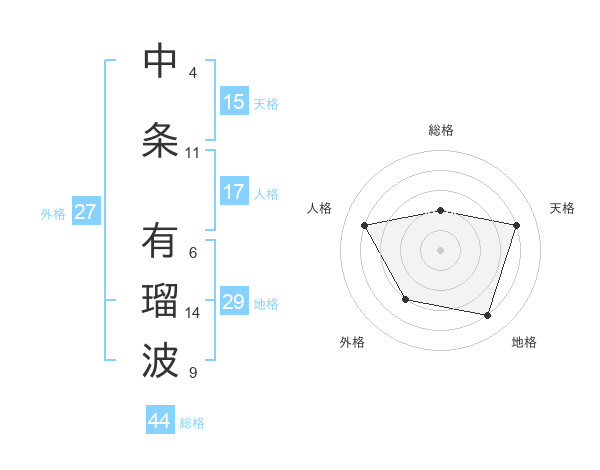 中条 有瑠波さんを姓名の画数から五運を鑑定