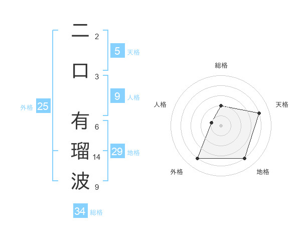 二口 有瑠波さんの地格は29画の4点!