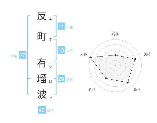 反町 有瑠波さんを姓名の画数から五運を鑑定