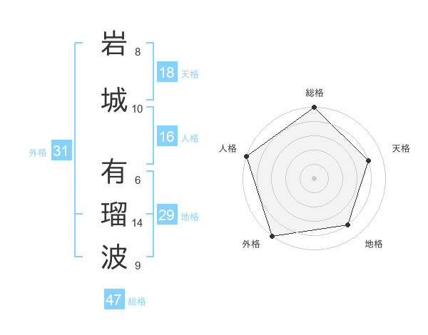 岩城 有瑠波さんの総格は47画の5点!