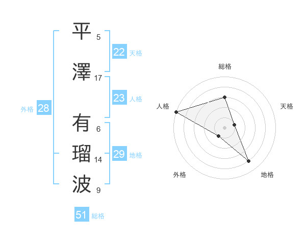 平澤 有瑠波さんの総格は51画の3点!