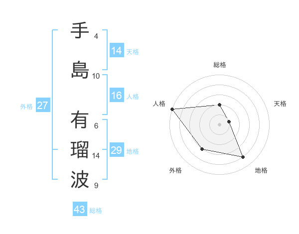手島 有瑠波さんの総格は43画の2点!