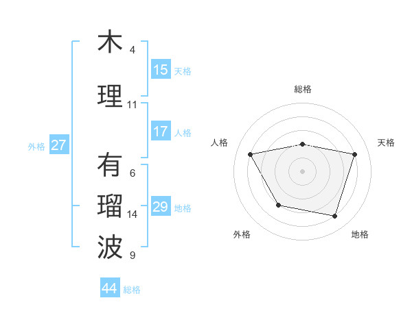 木理 有瑠波さんを姓名の画数から五運を鑑定