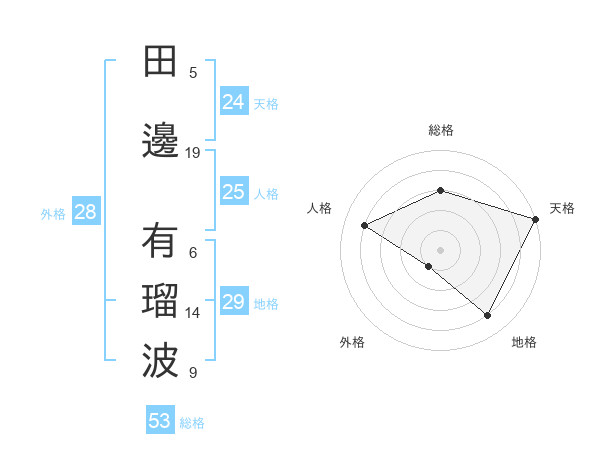 田邊 有瑠波さんを姓名の画数から五運を鑑定