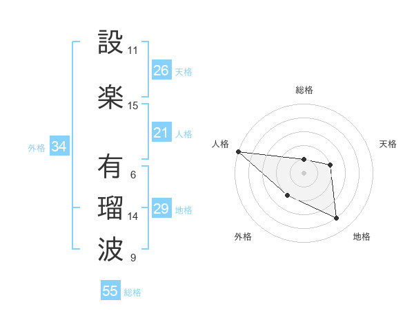 設楽 有瑠波さんを姓名の画数から五運を鑑定