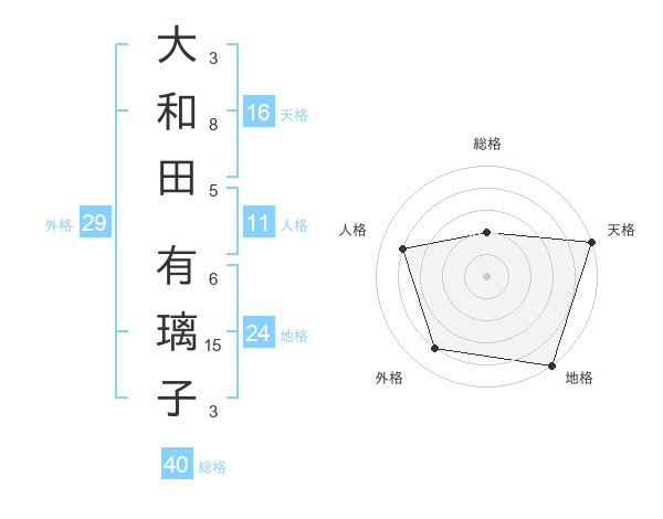 大和田 有璃子さんを姓名の画数から五運を鑑定