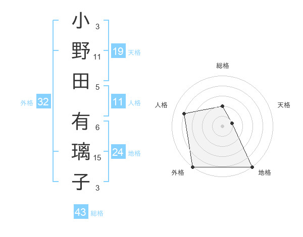 小野田 有璃子さんの外格は32画の5点!