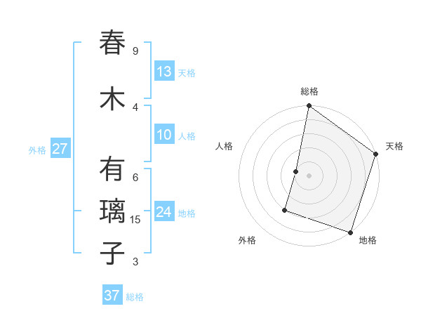 春木 有璃子さんを姓名の画数から五運を鑑定