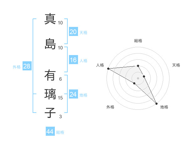 真島 有璃子さんを姓名の画数から五運を鑑定