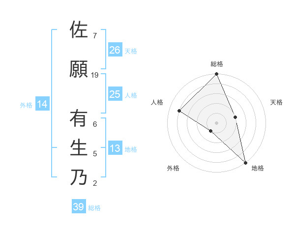 佐願 有生乃さんを姓名の画数から五運を鑑定