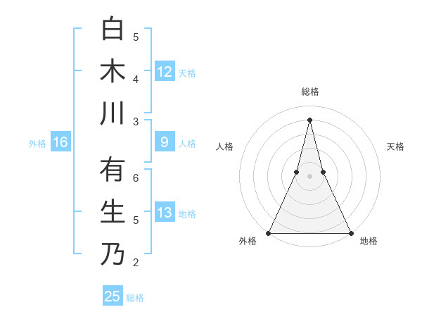 白木川 有生乃さんを姓名の画数から五運を鑑定