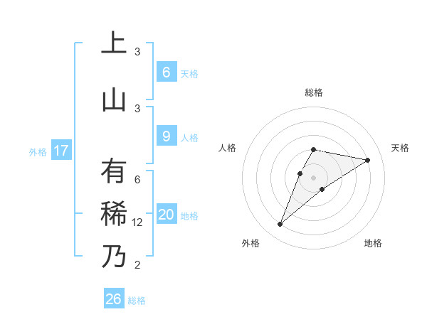 上山 有稀乃さんを姓名の画数から五運を鑑定