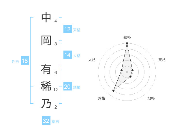 中岡 有稀乃さんの総格は32画の5点!