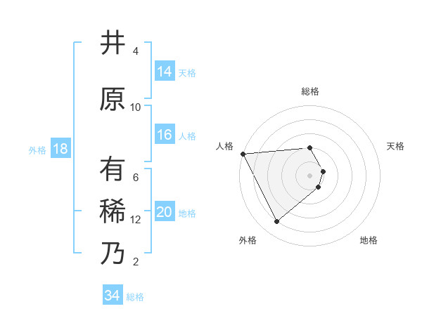 井原 有稀乃さんを姓名の画数から五運を鑑定