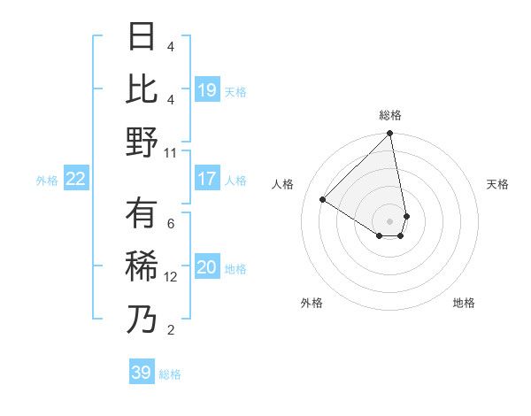 日比野 有稀乃さんの総格は39画の5点!