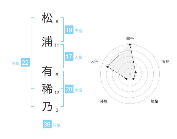 松浦 有稀乃さんの総格は39画の5点