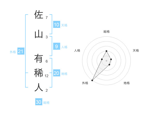 佐山 有稀人さんを姓名の画数から五運を鑑定