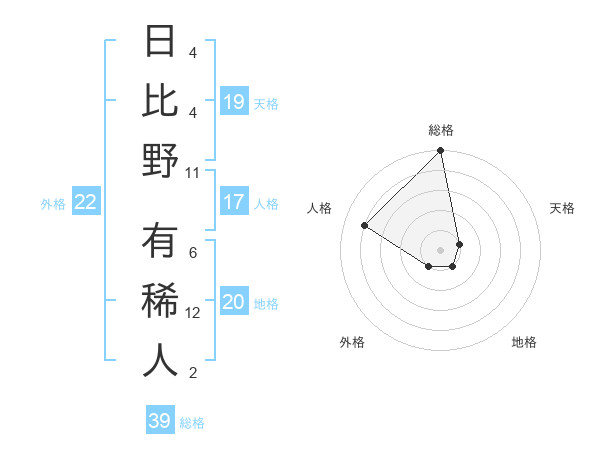 日比野 有稀人さんを姓名の画数から五運を鑑定