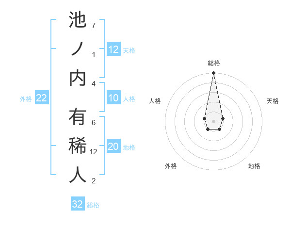 池ノ内 有稀人さんの総格は32画の5点!