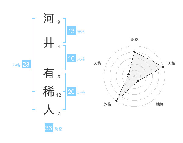 河井 有稀人さんを姓名の画数から五運を鑑定