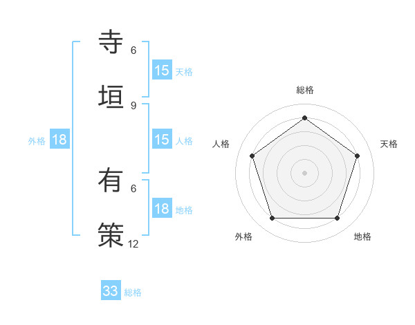 寺垣 有策さんを姓名の画数から五運を鑑定