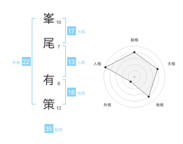 峯尾 有策さんの外格は22画の1点!
