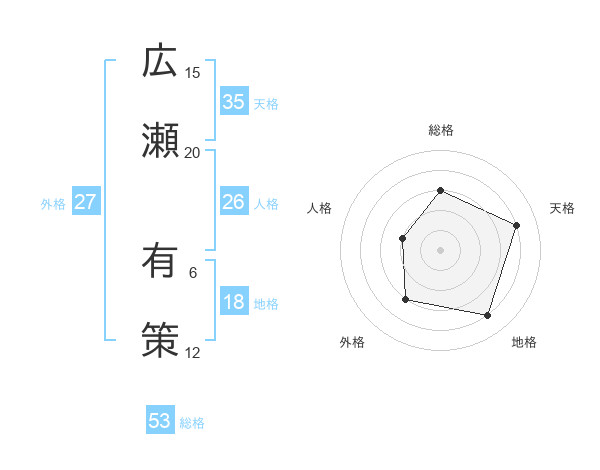 広瀬 有策さんの総格は53画の3点!