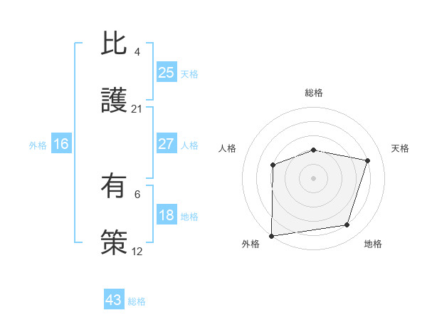 比護 有策さんの総格は43画の2点!