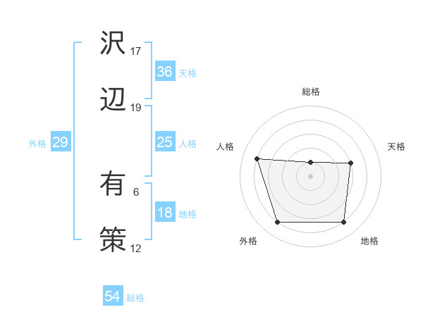 沢辺 有策さんの天格は36画の3点!