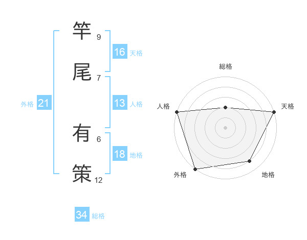竿尾 有策さんを姓名の画数から五運を鑑定