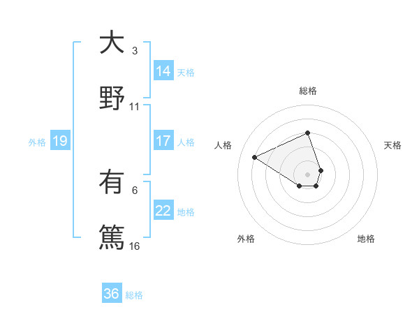 大野 有篤さんの地格は22画の1点!