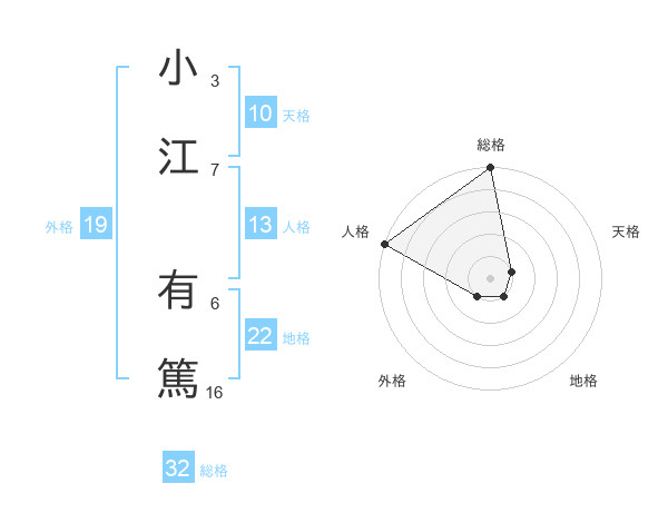 小江 有篤さんの総格は32画の5点!