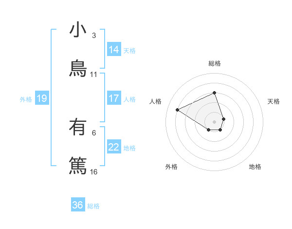 小鳥 有篤さんを姓名の画数から五運を鑑定