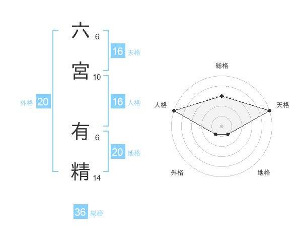 六宮 有精さんの天格は16画の5点!