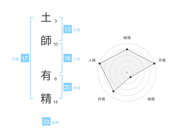 土師 有精さんの天格は13画の5点!