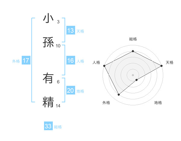小孫 有精さんの総格は33画の4点!