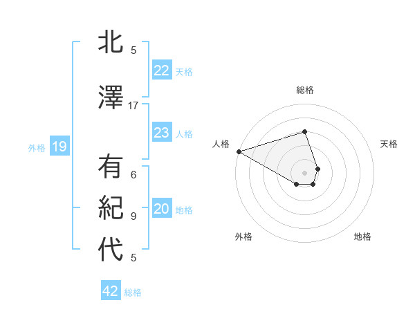 北澤 有紀代さんの総格は42画の3点!