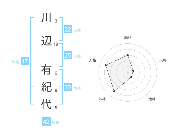 川辺 有紀代さんを姓名の画数から五運を鑑定