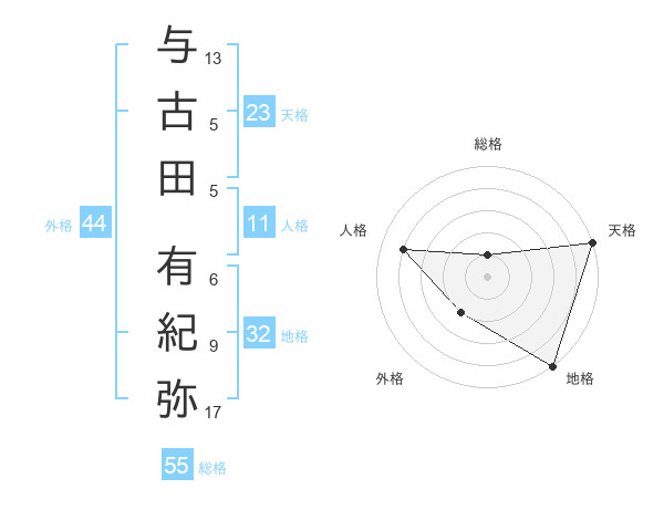 与古田 有紀弥さんを姓名の画数から五運を鑑定