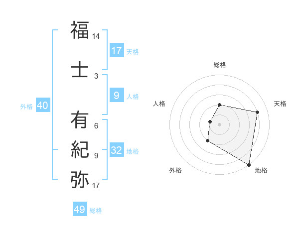福士 有紀弥さんの天格は17画の4点!